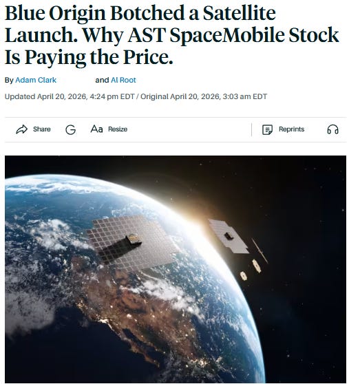 一邊是 Jeff Bezos 的 Blue Origin(藍色起源)在第三次發射中出了差錯,導致 AST SpaceMobile(ASTS)的 BlueBird 7 衛星未能進入預定軌道,最終化為大氣層中的流星。