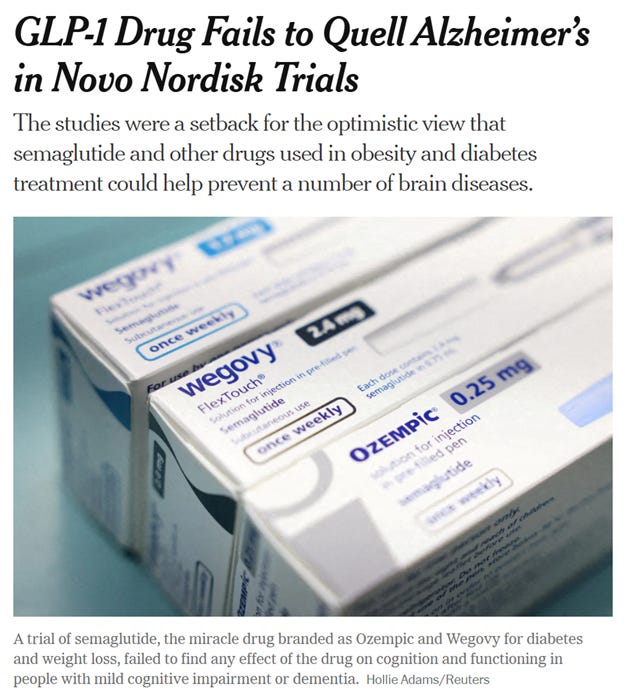 試驗結果顯示,Semaglutide 確實改善了一些生物標記(biomarkers),但這未能轉化為延緩患者認知能力下降的實際臨床效果。