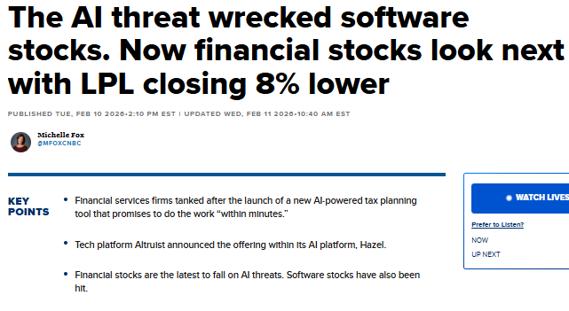 這一星期的劇烈波動,可以說是一種「AI 脫媒交易(AI Disruption Trade)」:
