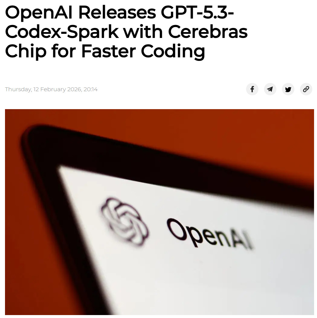 這場聯盟的首個成果GPT-5.3-Codex-Spark 模型,清晰地展示了 OpenAI 的戰略意圖。官方將其定位為一個「功能較弱但速度更快」的版本,專為程式碼編輯、測試等需要快速互動的場景設計。