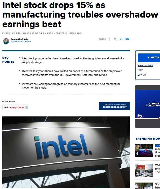 這場崩跌,與其說是 Intel 的徹底失敗,不如說是一場市場狂熱預期與殘酷製造現實的迎頭對撞。