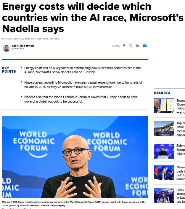 對 Nadella 來說,我們不應討論「誰擁有最好模型」,真正的戰略主戰場,已經轉移到了能源經濟學和物理基礎設施。