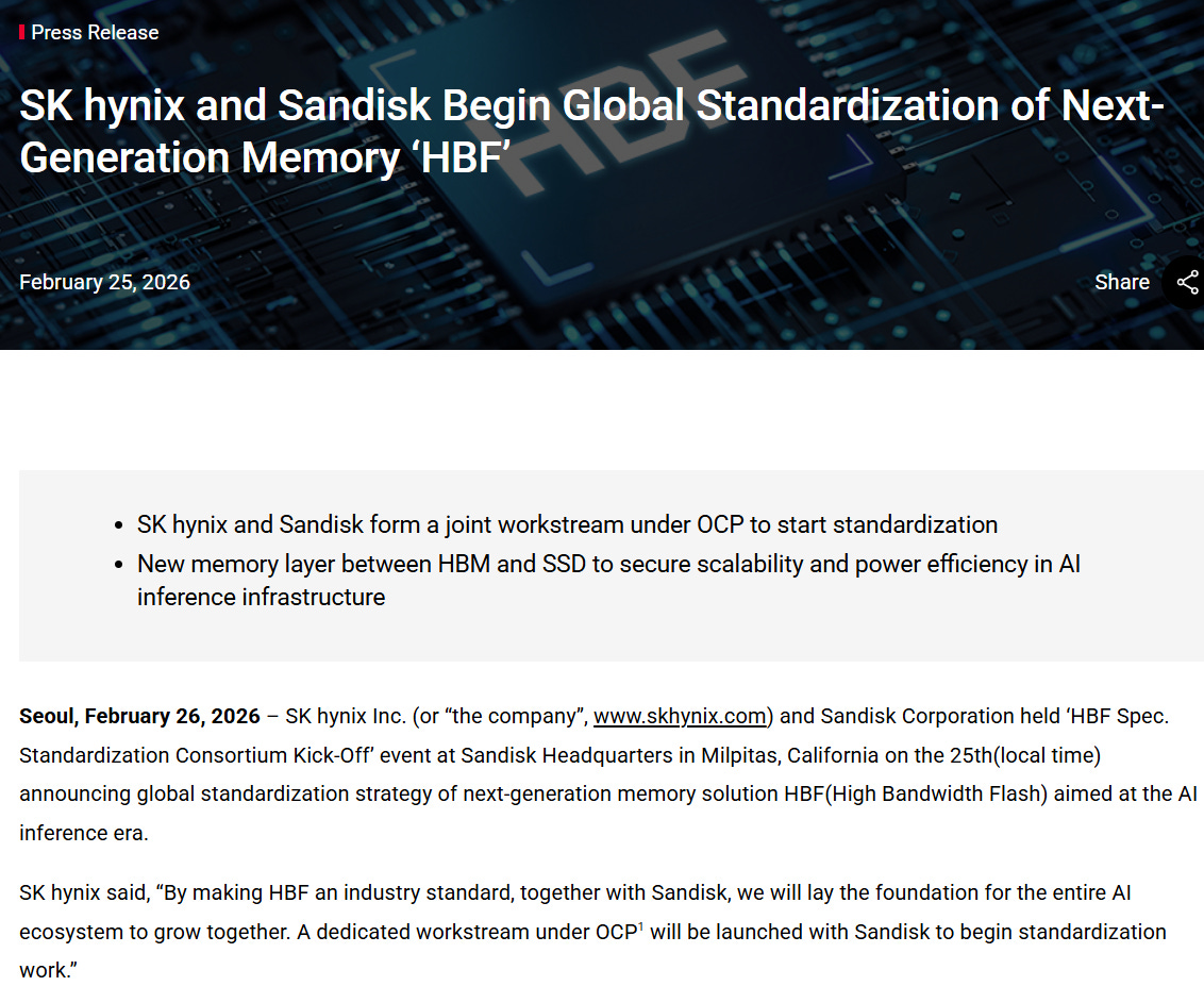 主題五:SanDisk海力士聯手推出HBF,定義記憶體下一世代?