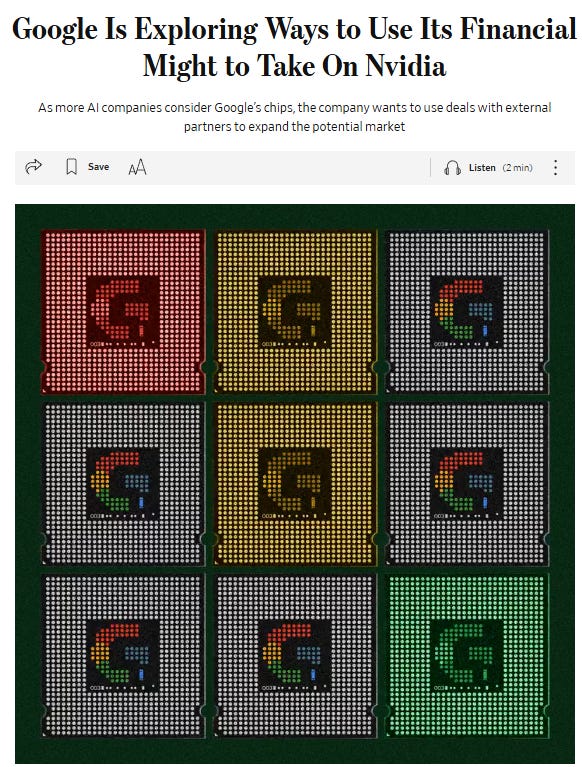 這不再只是矽谷常見的「大投小」,而是一場精心策劃的「算力大反攻」。Google正在複製 Nvidia玩得爐火純青的「影子戰爭」打法,準備從 Nvidia手中奪回 AI 基礎設施的定價權。