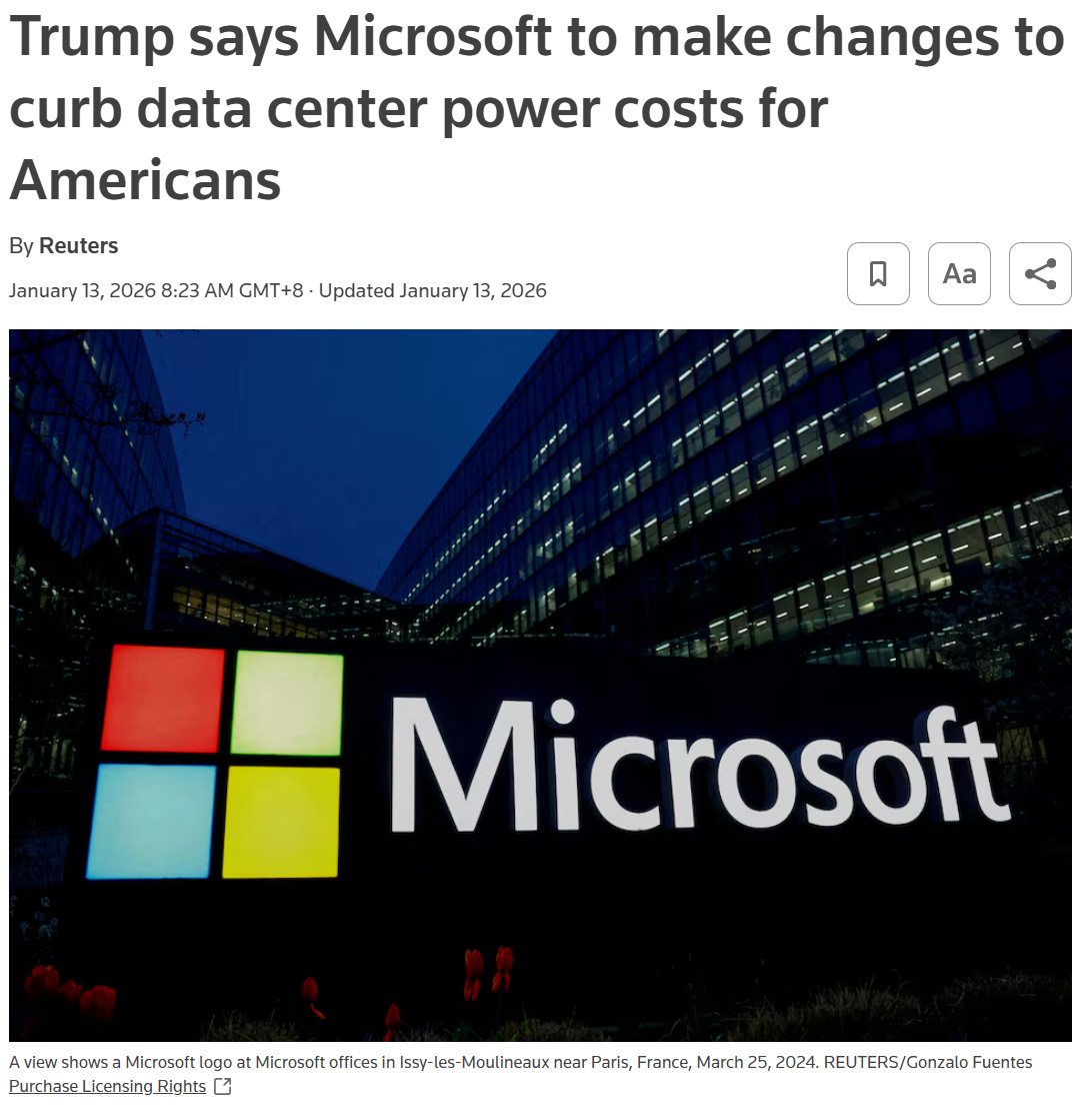 主題六:Trump要求電費自付,微軟為何第一個表態?